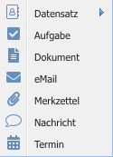 - Der „Spoing“-Button im Aktivitätenreiter öffnet jetzt die Panels, wie sie es von der Startseite kennen. Damit ist es möglich, alle Aktivitäten auch vollständig im Datensatz zu bearbeiten, ohne wie vorher ins Modul springen zu müssen. So können Sie jetzt auch Infos direkt im Datensatz „grünen“, Inhalte ändern, Bearbeiter bearbeiten. Das ganze speichern und mit dem „x“ schließen.