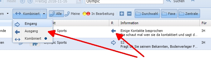 - ausgehende Anrufe werden jetzt auch in den Anruflisten angezeigt. Sie können diese über den Richtungsschalter separat oder kombiniert anzeigen. Tipp: Stellen sie sich ihre Standard Liste entsprechend ein.